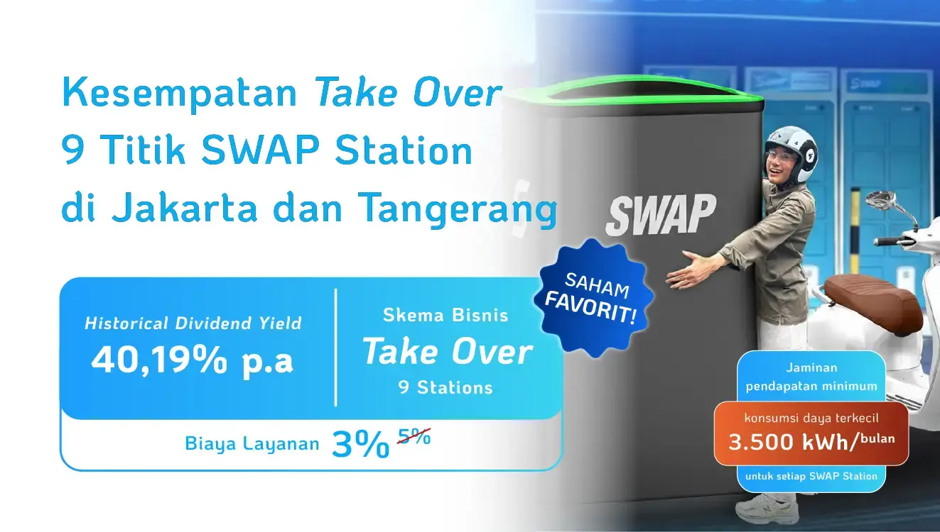Investasi Saham Bisnis 9 Titik SWAP Station Penukaran Baterai Motor Listrik di Wilayah Jakarta dan Tangerang